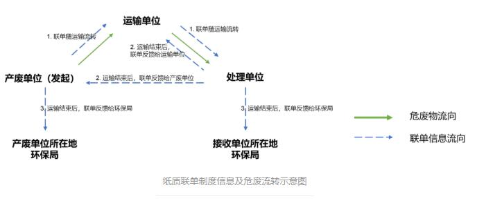 隨著我國工業(yè)化和城市經(jīng)濟(jì)的高速發(fā)展,工業(yè)廢物、生活廢物以及醫(yī)療廢物的產(chǎn)生量急劇增加,其中對(duì)人體健康、土壤、水體等危害更大的危險(xiǎn)廢物也大大增加,整個(gè)2018年的危廢產(chǎn)量達(dá)到7500萬噸,與2011年相比翻了一番。如果危險(xiǎn)廢物處理不當(dāng),則會(huì)對(duì)環(huán)境以及人類造成巨大危害,甚至導(dǎo)致疾病和死亡。如何能更加有效、環(huán)保、徹底處理或穩(wěn)定化這些危險(xiǎn)廢物,成為當(dāng)今世界關(guān)注的重大問題。 在過去的一年里,生態(tài)環(huán)境部新增了包括固體廢物與化學(xué)品司,危險(xiǎn)廢物也在固體廢物與化學(xué)品司管理范圍內(nèi)。緊隨其后的是“清廢行動(dòng)2018”轟轟烈烈拉開架勢(shì),加強(qiáng)了對(duì)固廢以及危廢產(chǎn)生企業(yè)的監(jiān)管和督查,大量被查出來的固廢危廢將進(jìn)入正規(guī)處置渠道。在長江經(jīng)濟(jì)帶沿岸地區(qū),工信部也對(duì)工業(yè)固廢展開大排查。同時(shí),新版《環(huán)境保護(hù)稅法》頒布,山東、四川、廣東等省危廢相關(guān)細(xì)則紛紛落地,對(duì)于違反相關(guān)法律的行為也都遵從“從重處罰”的原則。 目前傳統(tǒng)的對(duì)危險(xiǎn)廢物轉(zhuǎn)移過程的監(jiān)管主要實(shí)行的是“紙質(zhì)聯(lián)單制度”,即轉(zhuǎn)移過程中的關(guān)鍵信息和數(shù)據(jù)由參與方記錄在聯(lián)單上,最后寄給相關(guān)的政府環(huán)保部門進(jìn)行監(jiān)管(如下圖所示)。此種制度存在流轉(zhuǎn)效率低,數(shù)據(jù)準(zhǔn)確性不可控,聯(lián)單的保存與管理成本高等問題。