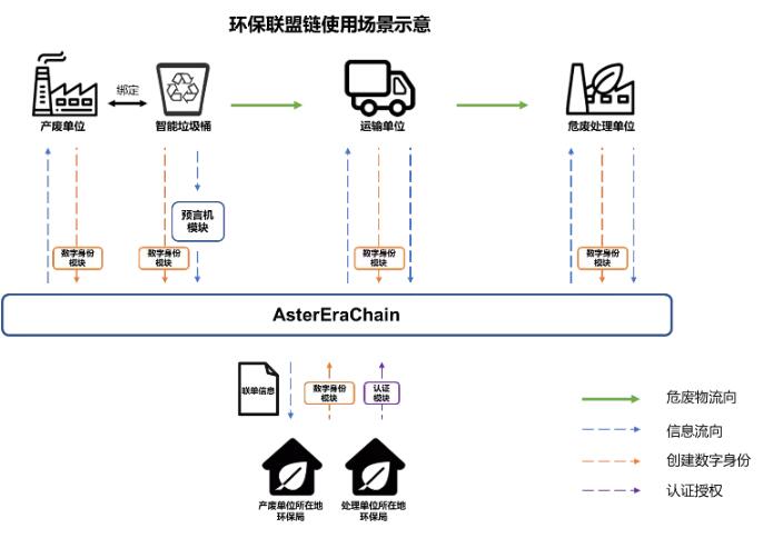 某公司與當(dāng)?shù)卣奈U處理企業(yè)、環(huán)保部門合作,利用物聯(lián)網(wǎng)和區(qū)塊鏈技術(shù),打造了一個(gè)工業(yè)級(jí)危險(xiǎn)廢物轉(zhuǎn)移管理大數(shù)據(jù)平臺(tái)。使用此大數(shù)據(jù)平臺(tái)的企業(yè)會(huì)在產(chǎn)廢工廠放置智能危廢垃圾桶,垃圾桶會(huì)將收集到的危險(xiǎn)廢物的重量等信息通過物聯(lián)網(wǎng)協(xié)議上傳到云端管理平臺(tái),保證數(shù)據(jù)的即時(shí)準(zhǔn)確,當(dāng)垃圾桶中的廢物達(dá)到一定重量閾值后,平臺(tái)會(huì)調(diào)度相關(guān)的運(yùn)輸公司的車輛去收集廢物,運(yùn)輸?shù)较嚓P(guān)的處置單位。 在危廢轉(zhuǎn)移過程中,當(dāng)智能垃圾桶中的危廢被傾倒出去時(shí),垃圾桶會(huì)自動(dòng)在區(qū)塊鏈上創(chuàng)建一個(gè)“區(qū)塊鏈聯(lián)單”,而產(chǎn)廢企業(yè)、運(yùn)輸公司、處置單位接下來的每一次操作也都會(huì)通過APP上傳信息到區(qū)塊鏈聯(lián)單中,區(qū)塊鏈聯(lián)單自創(chuàng)建到完成的整個(gè)生命周期也都在相關(guān)政府環(huán)保部門的監(jiān)管之下,并且通過密碼學(xué)技術(shù)以及區(qū)塊鏈權(quán)限管理功能,有效的保護(hù)各企業(yè)的數(shù)據(jù)隱私性。同時(shí),大數(shù)據(jù)管理平臺(tái)會(huì)對(duì)危廢轉(zhuǎn)移數(shù)據(jù)、聯(lián)單數(shù)據(jù)進(jìn)行管理、分析和可視化,提供一個(gè)完整的從線下收集數(shù)據(jù)到云端管理數(shù)據(jù)的信息閉環(huán)。