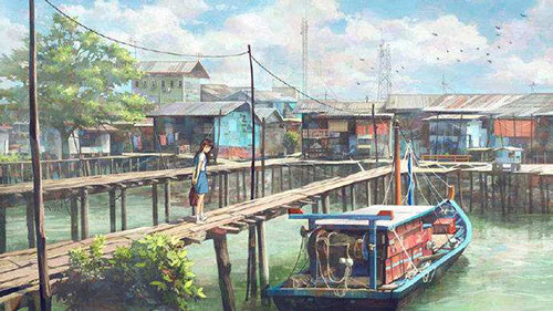 | 遠方的天一絲絲微亮了起來。是魚肚的浮白,一層層淡淡地從啟明星邊的灰藍中褪了出來,淡金色的微光散在云邊。小趙拉開酒紅色的簾子,昂著頭,就那么靜靜地站著。絲簾垂在兩邊,框住了這嶄新的、朦朧的一切。 小趙的舊靴子在接連幾天的暴雨轟擊下終于開了膠。她拖著四下離散的鞋底往教室踱去,凌晨5點半,她熱愛這孤獨的時刻,這讓她覺得自己與別人不一樣。每個人都不甘平凡的吧,她想。雨水混著污水汩汩地在下水道悶聲流著,摻著河里凈化水質用的噴泉傾灑的聲音,竟也顯得不那么陰暗了。只是下水道早已被不知名的塑料袋或是一些其他異物堵住了,豁口不夠呼吸,于是那些污水和其余發臭的垃圾一起,回旋上升,然后匯成一團黃白色的液體緩緩浮上來。像是免疫時傾瀉出的膿液,昭示著克服感染的成果,或是被同化的結果。汩汩地流著,一層一層慢慢涌上來,似乎要把小趙吞沒。那些異物,不斷的,發黃的,淌著血液的,骯臟的,又是誰的?