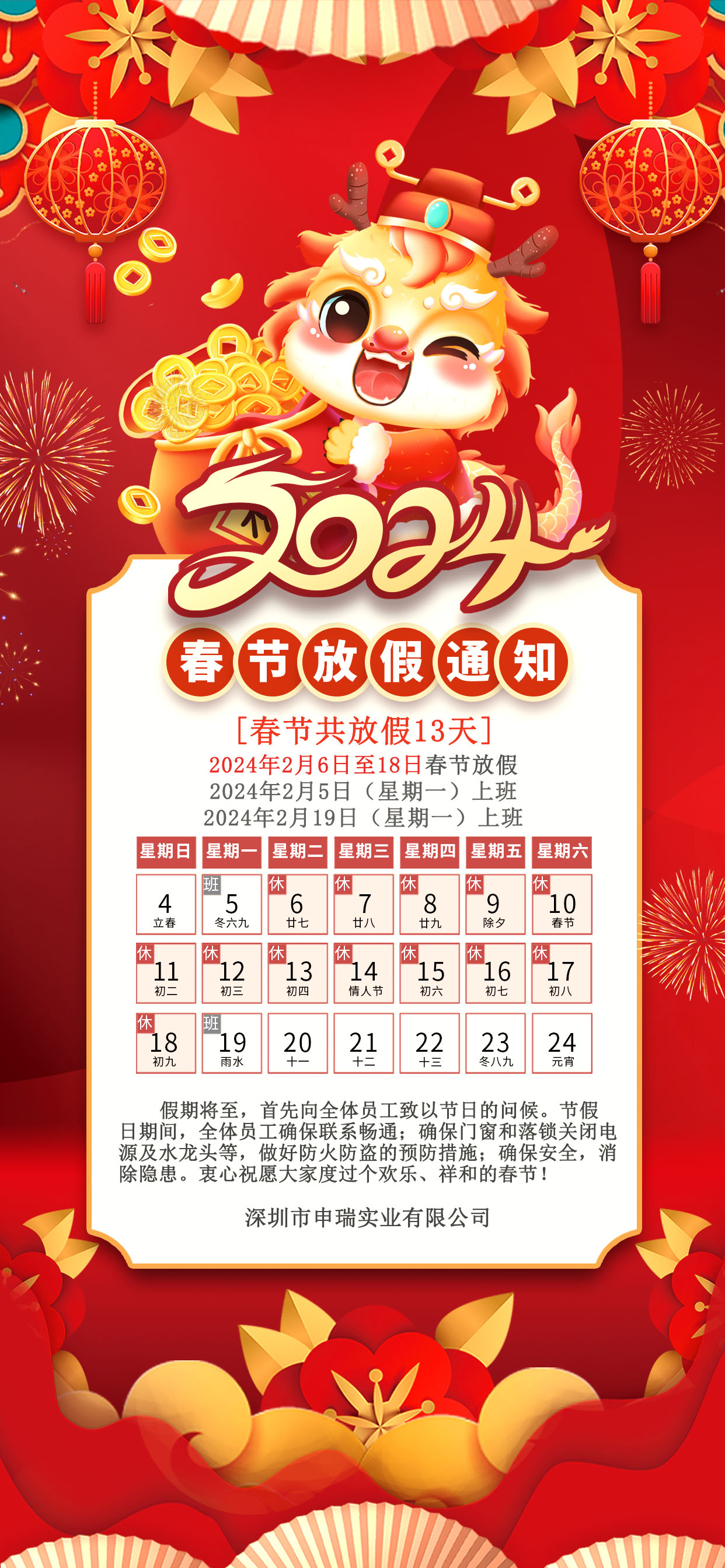 申瑞|2024年春節放假通知